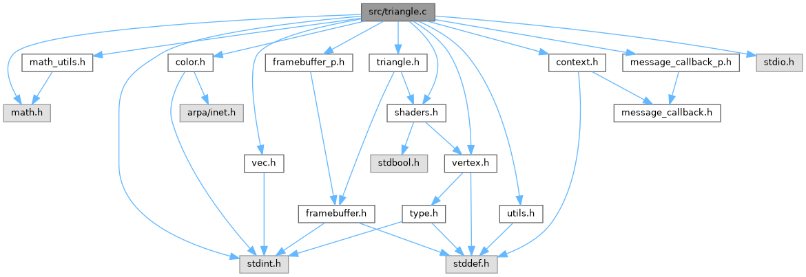 #include <math.h>#include <stdint.h>#include <stdio.h>#include "triangle.h"#include "context.h"#include "vertex.h"#include "framebuffer_p.h"#include "message_callback_p.h"#include "shaders.h"#include "color.h"#include "utils.h"#include "math_utils.h"#include "vec.h"